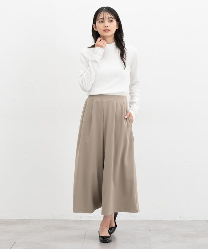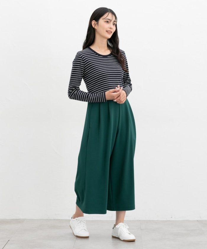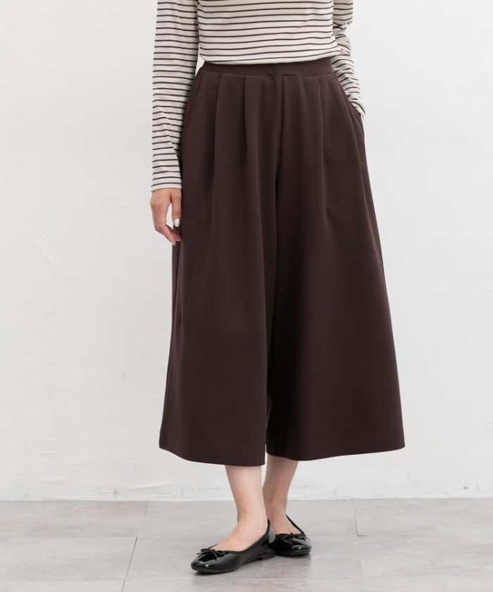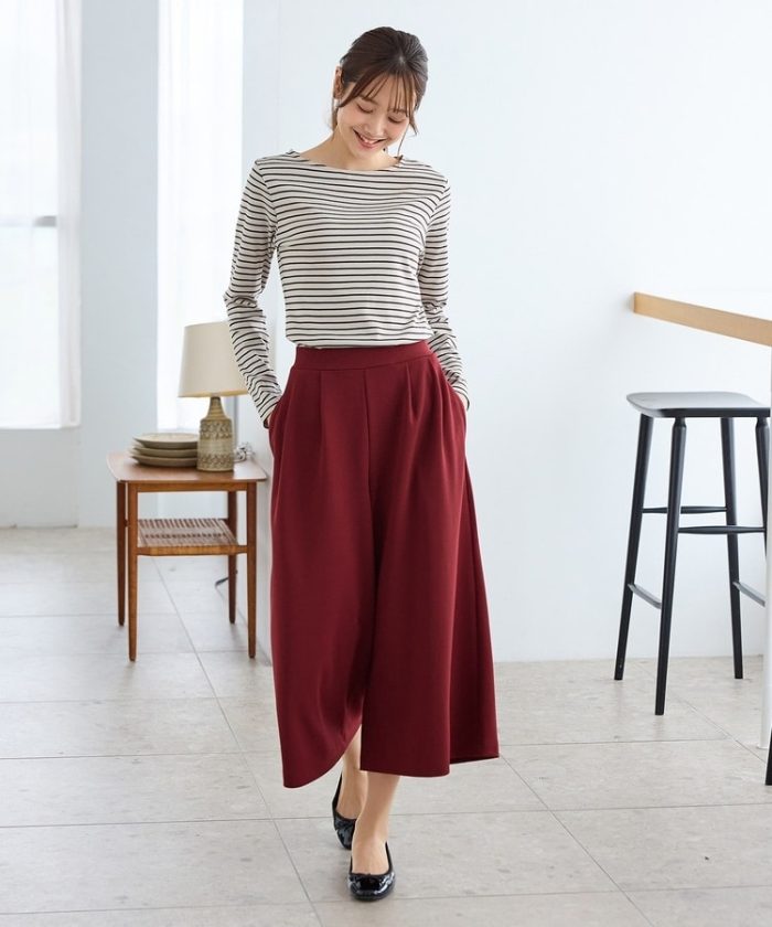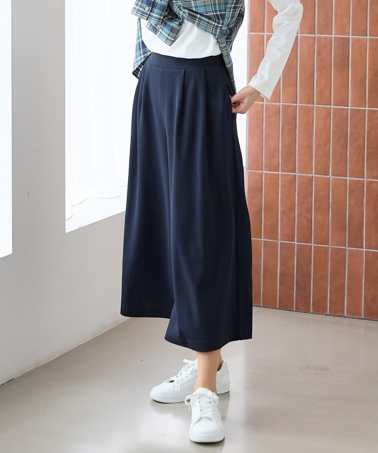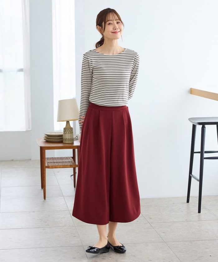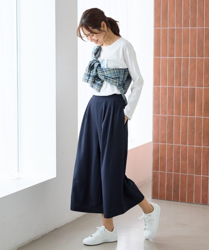 スカート見えするワイドシルエットが大人可愛いデザイン。