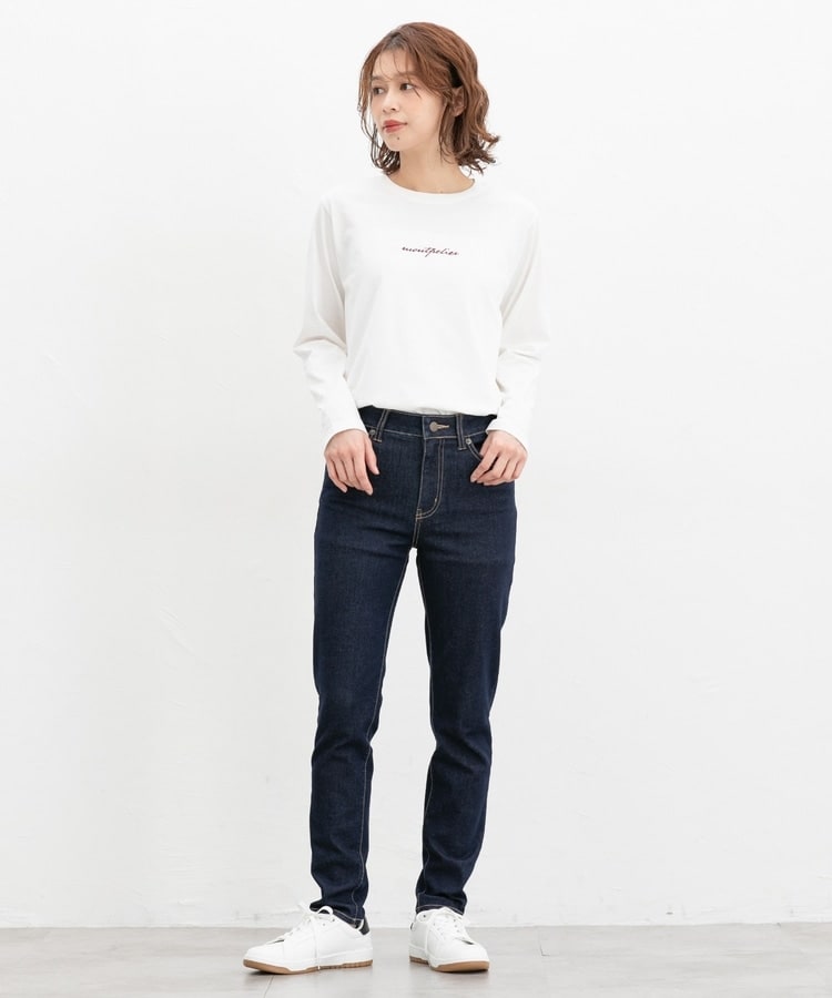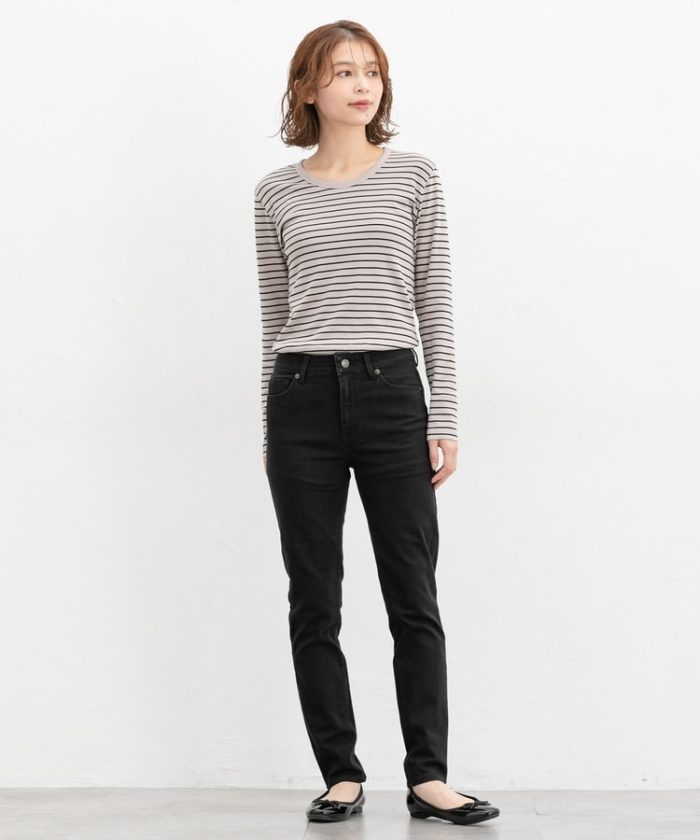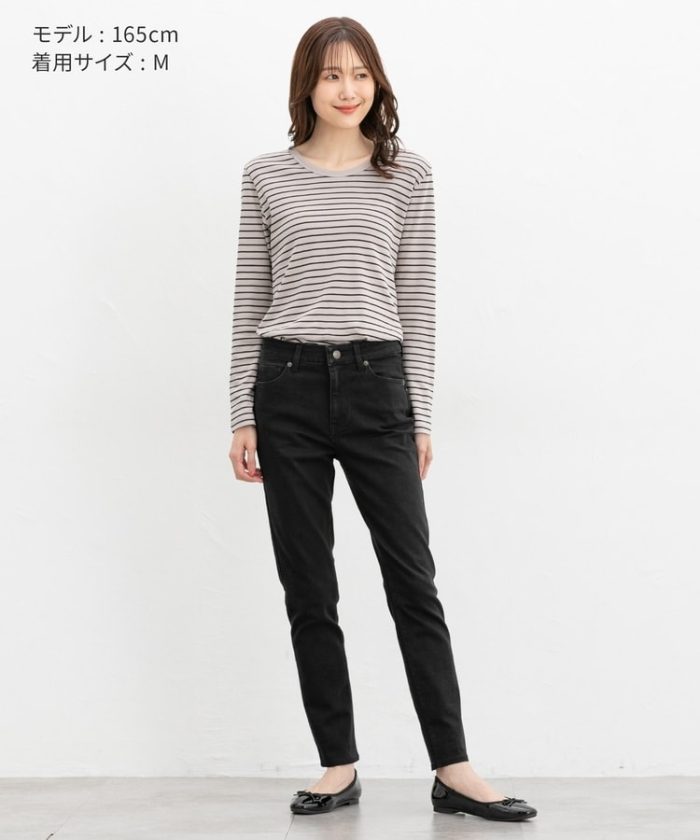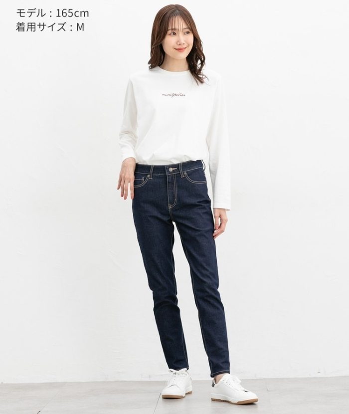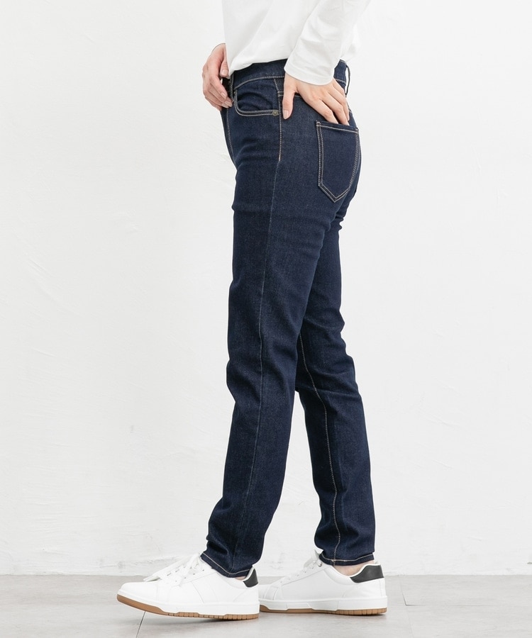 スキニーよりもややピッタリとしたシルエットながら、ストレッチが利いた生地で、楽に美脚に見せてはき心地も快適。