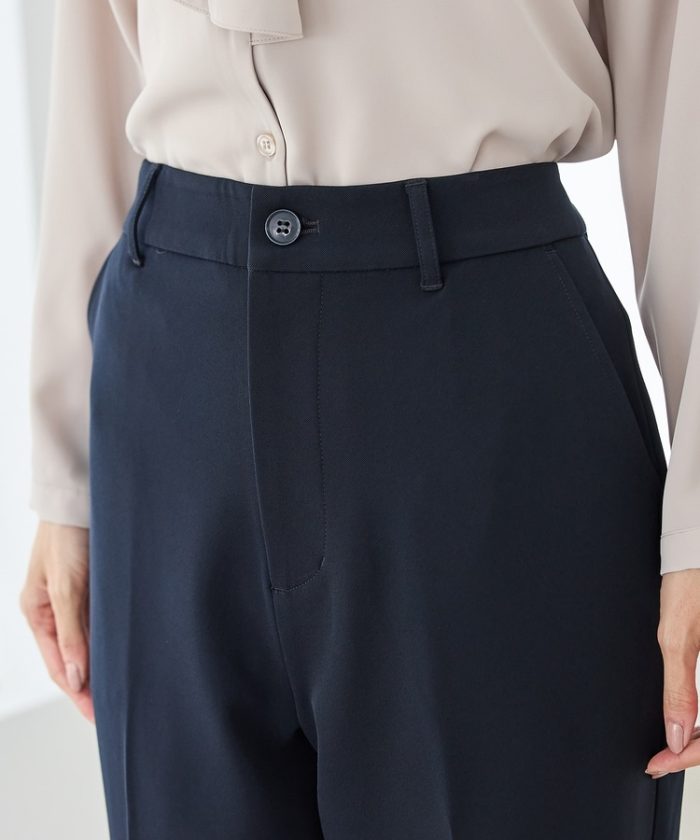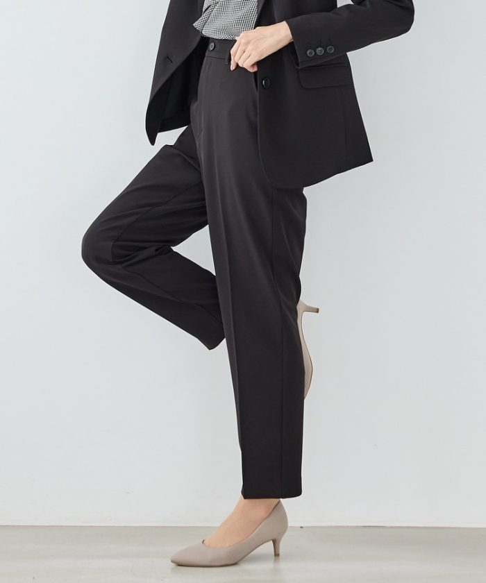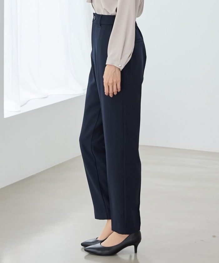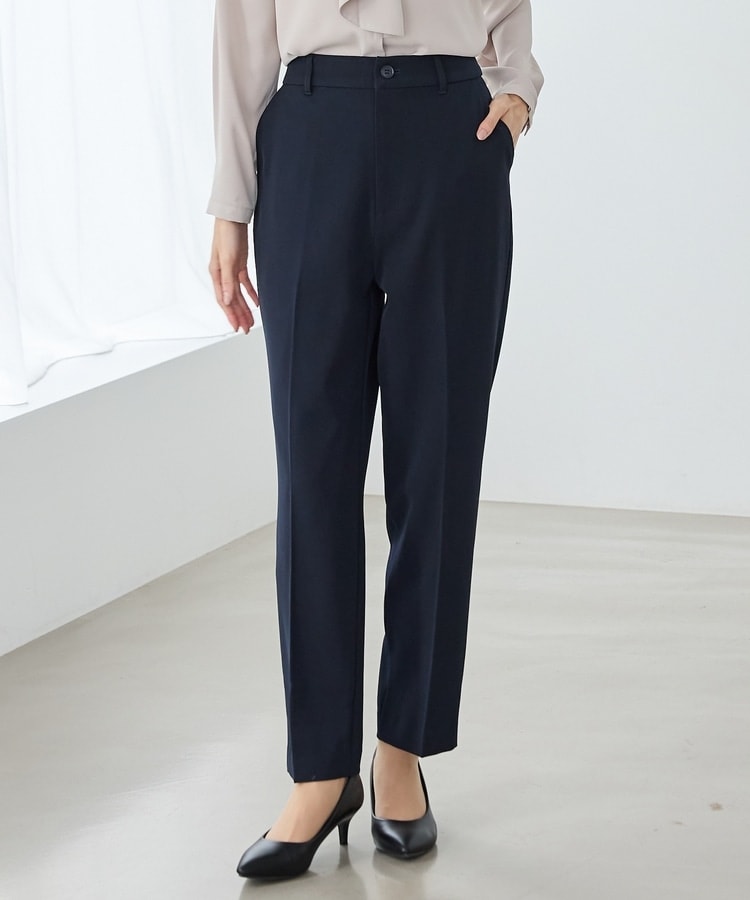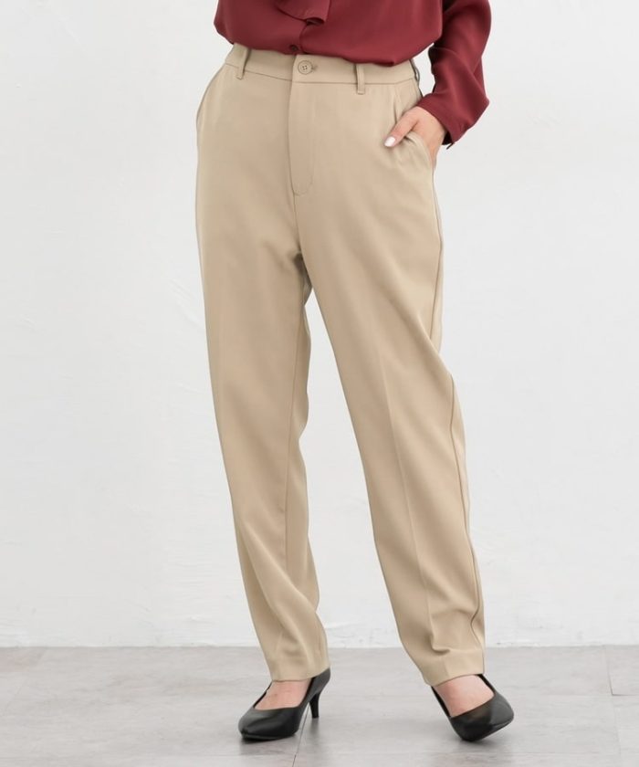 きちんと感のあるセンタープレス入りで、美脚効果も抜群のテーパードパンツ、股下66cmタイプ。