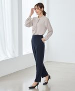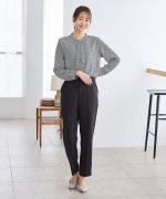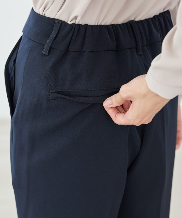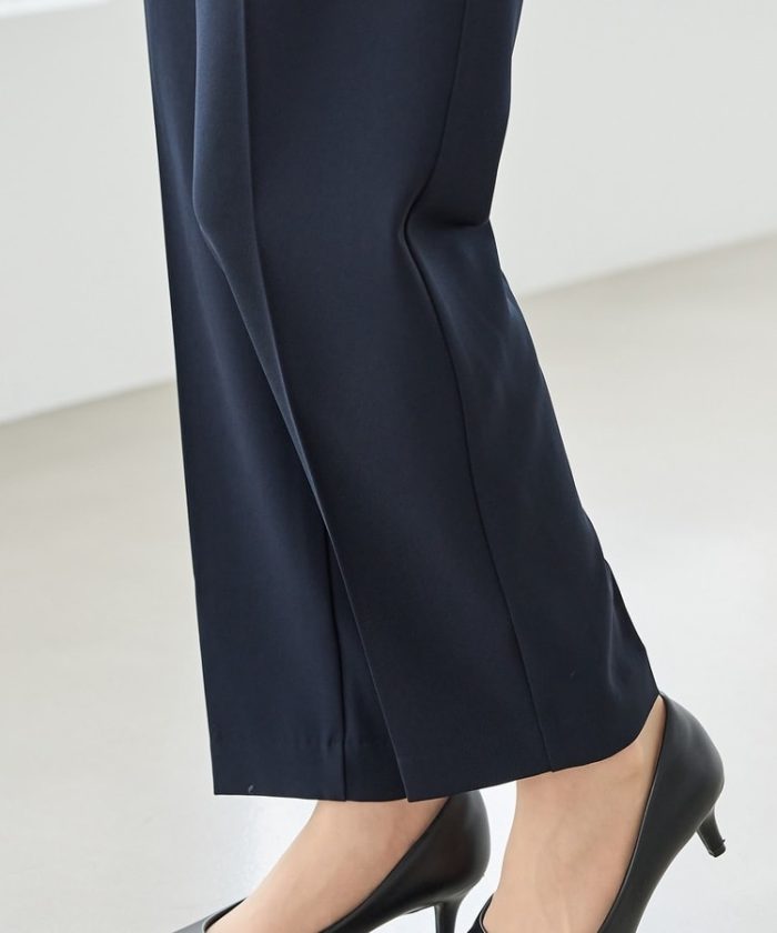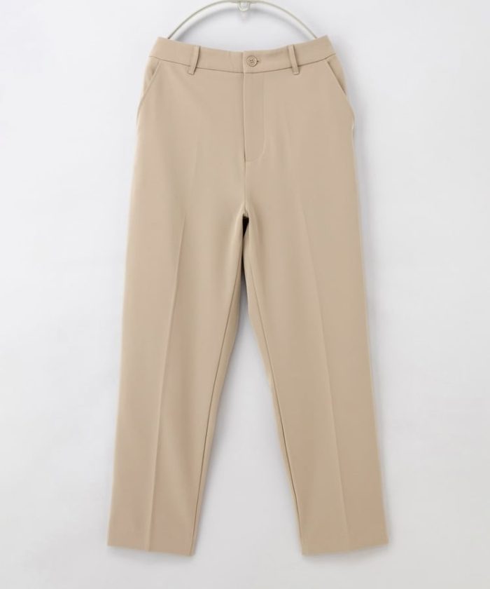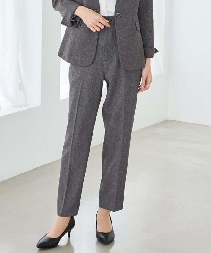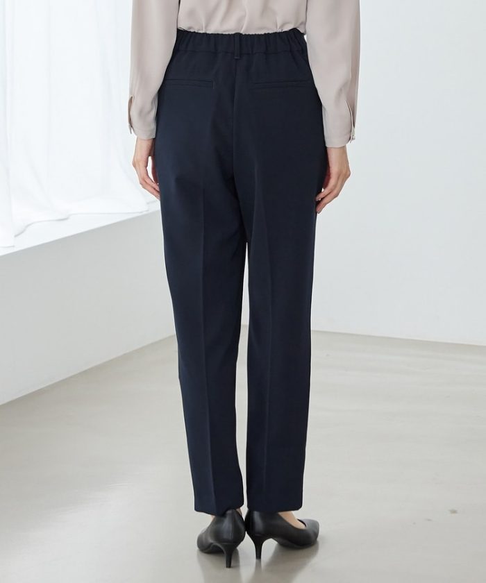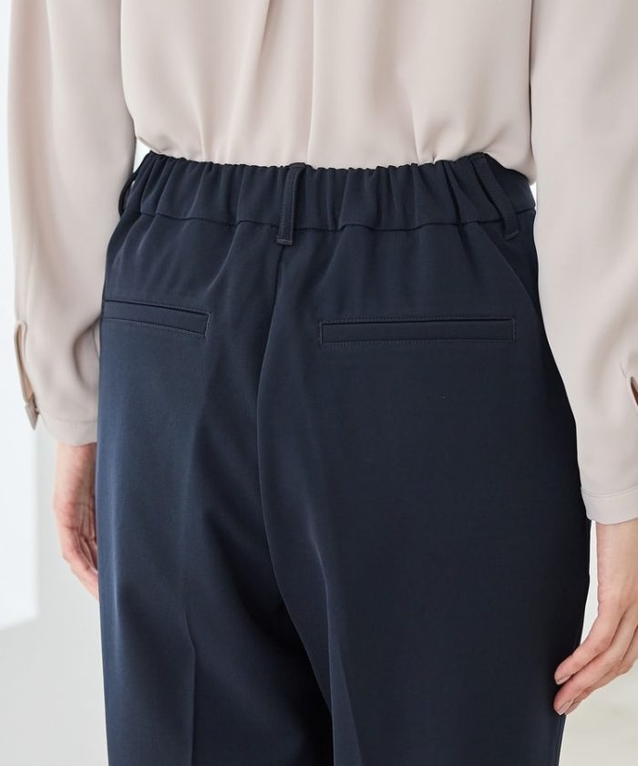 きちんと感のあるセンタープレス入りで、美脚効果も抜群のテーパードパンツ、股下66cmタイプ。