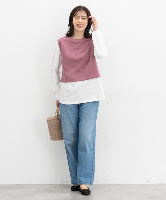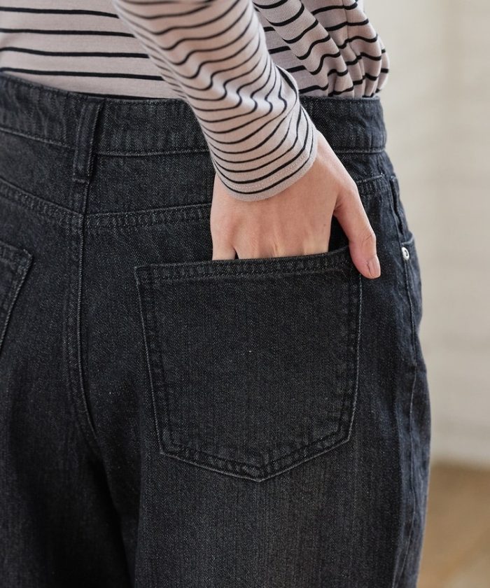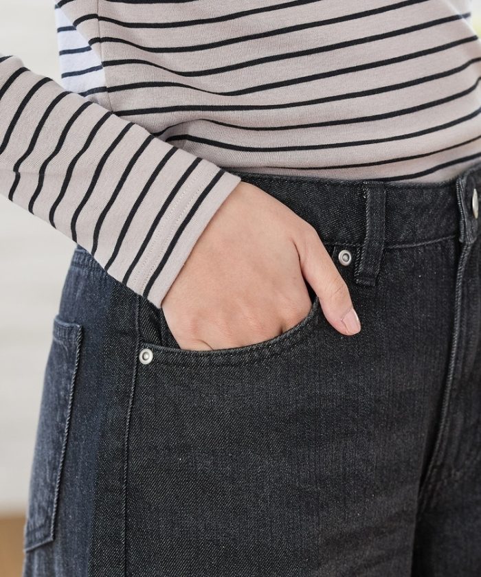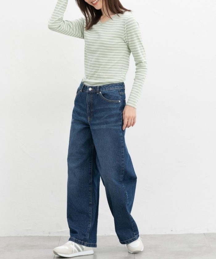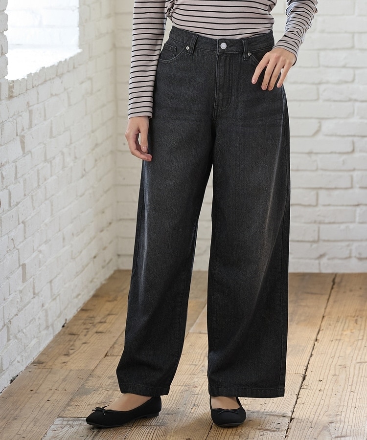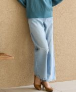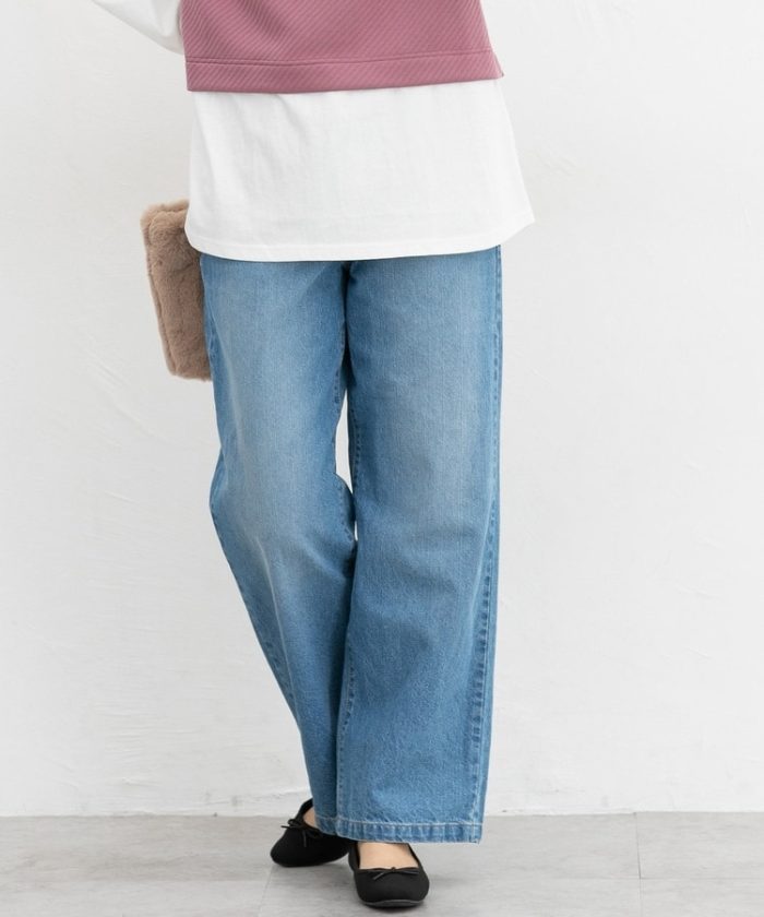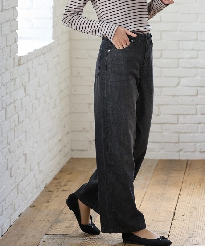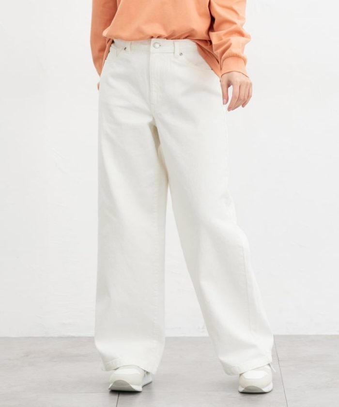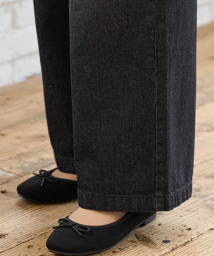 ややワイドなシルエットで、脚のラインを隠しながらスタイルアップ効果も◎