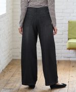 オールシーズン着用可能なワイドパンツ、股下73cmタイプ。