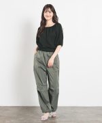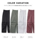 裾のドロストコードを緩めてストレートパンツとしても着用可能。
