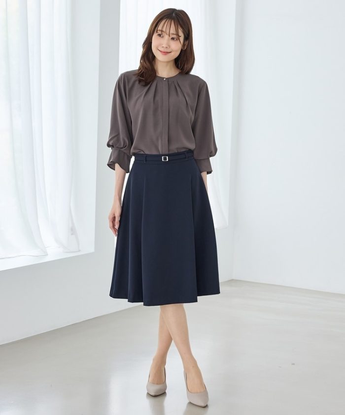 ブラウスやコンパクトトップスはもちろん、お手持ちのニットカーデなどとも相性抜群。