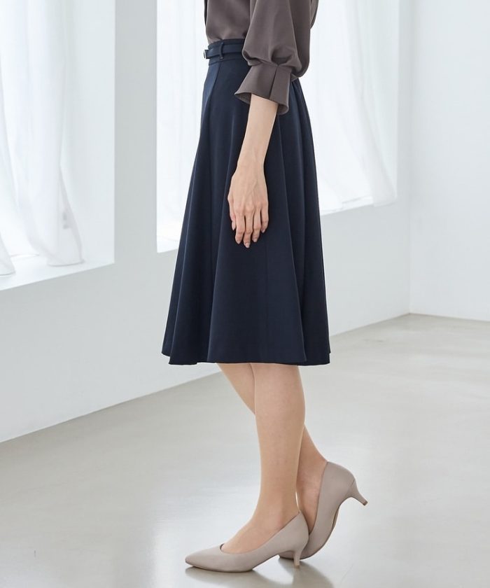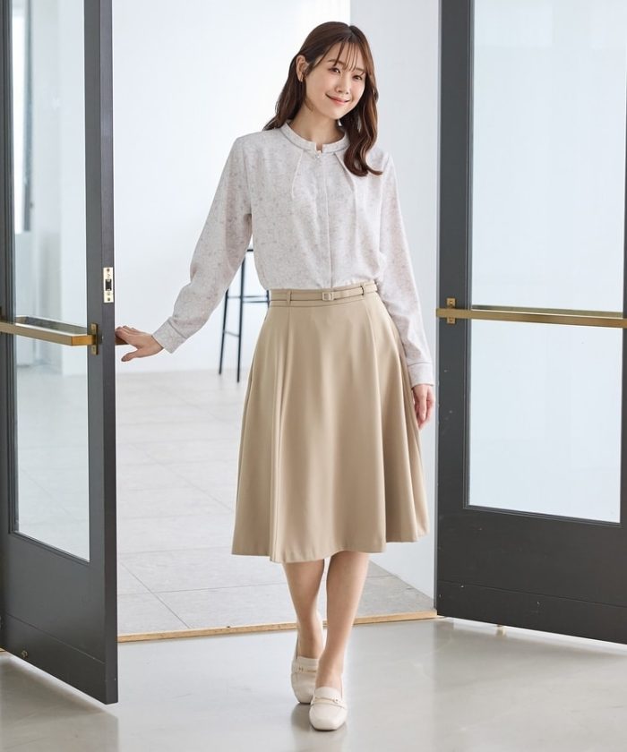 広がりすぎないフレアのきれい見えシルエット、64cm丈タイプ。