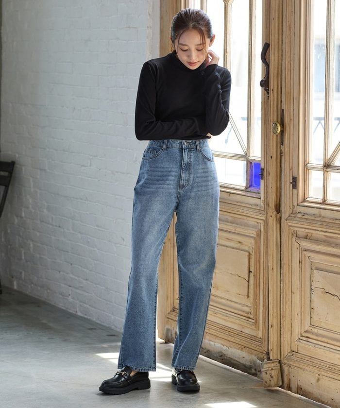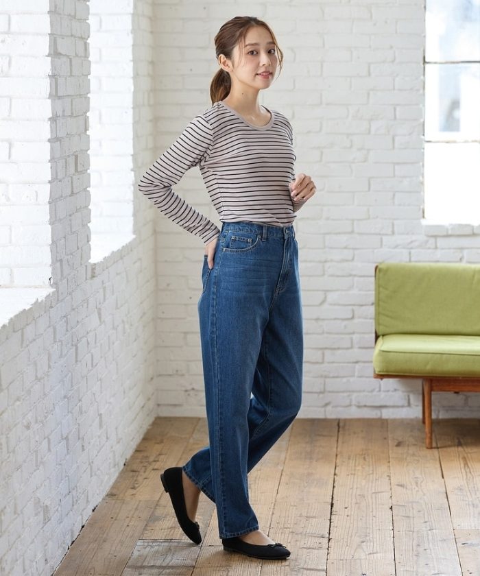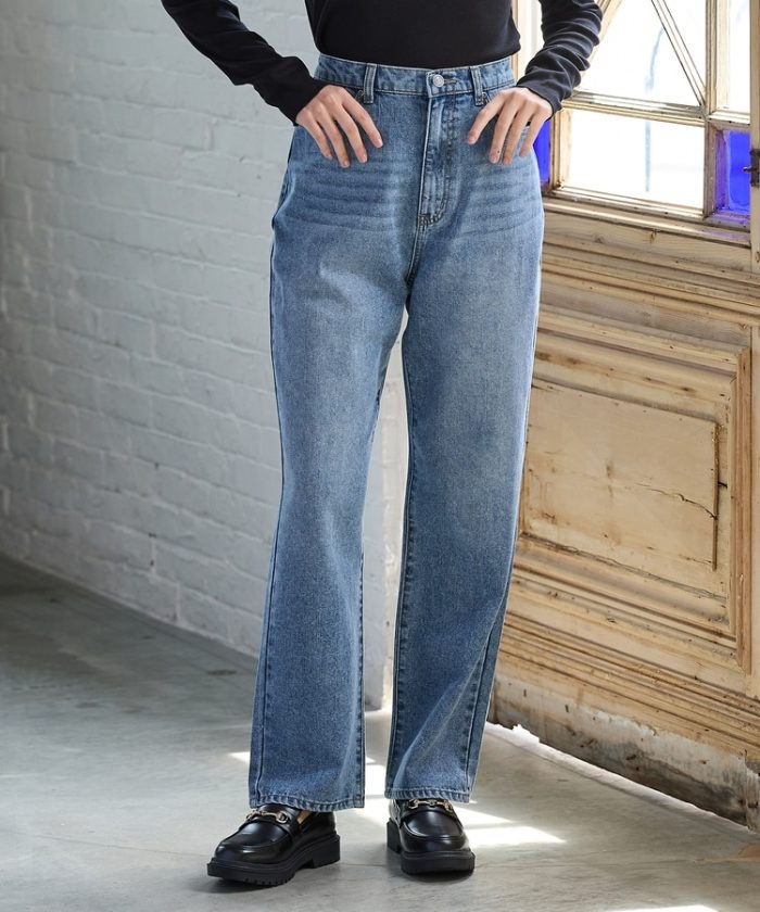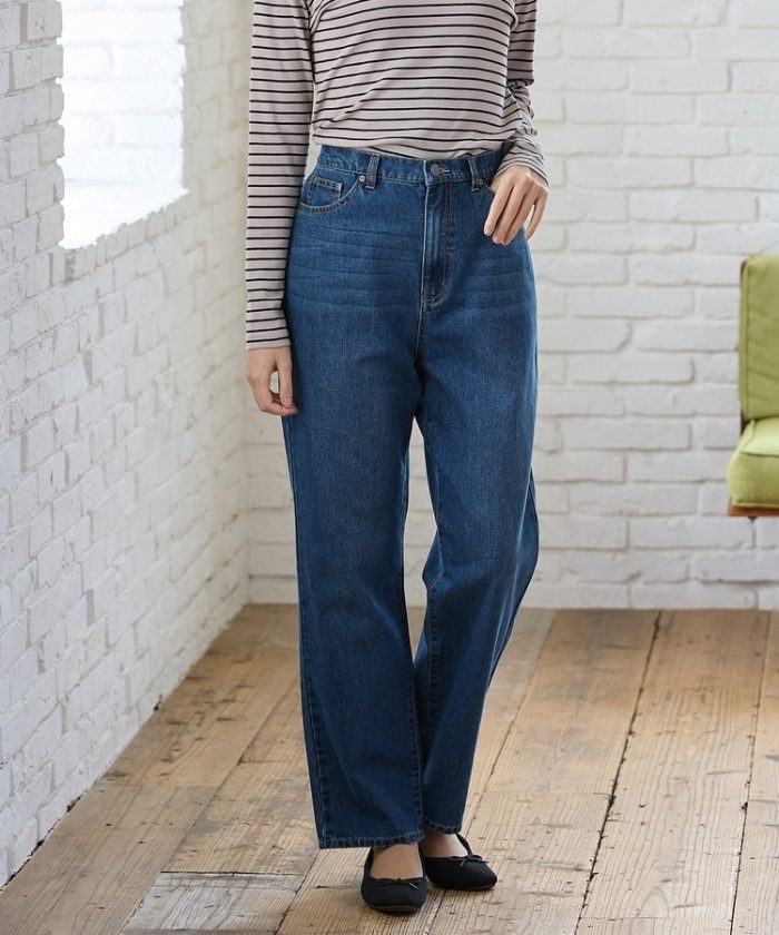 太すぎないシルエットのデニムストレート、股下70cmタイプ。