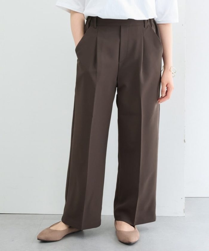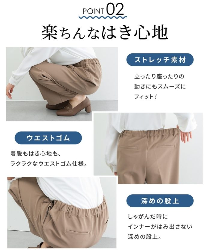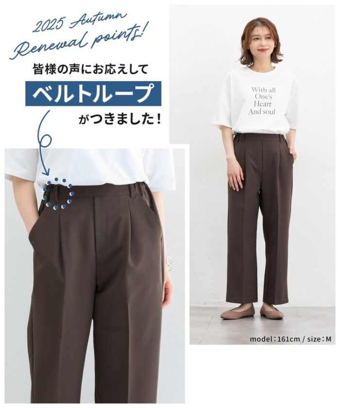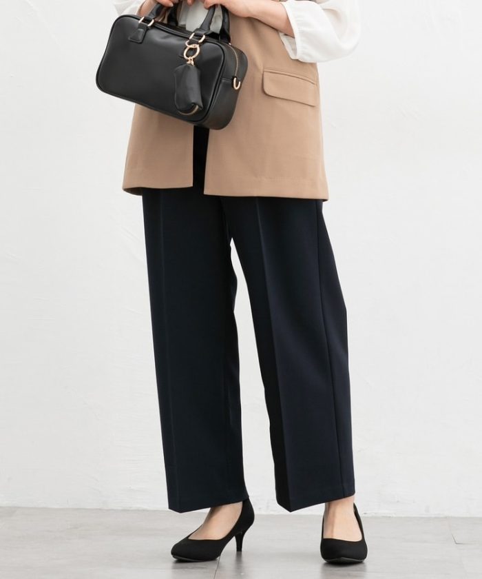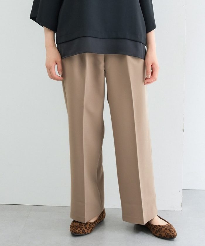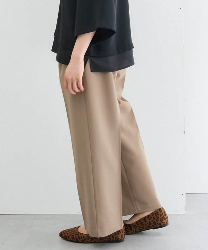 きちんと感のあるセンタープレスと腰回りのラインにこだわった美しいストレートシルエットで美脚効果も抜群。
