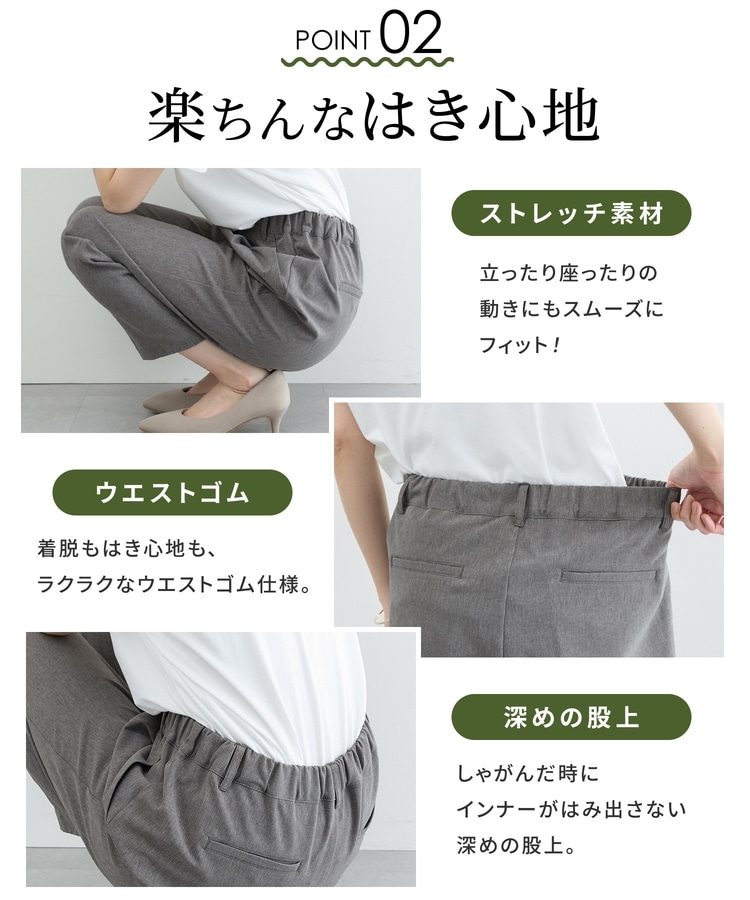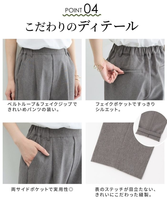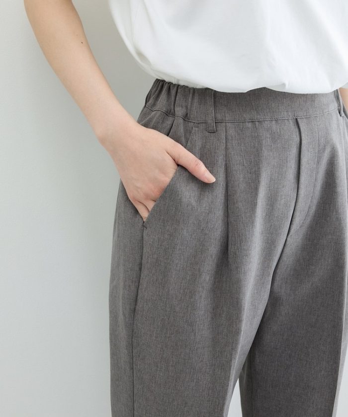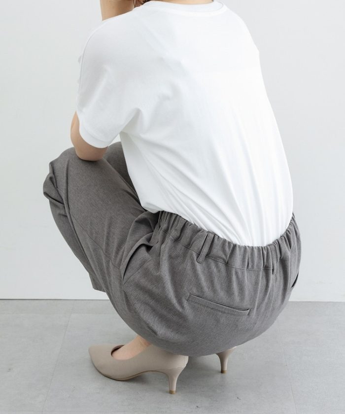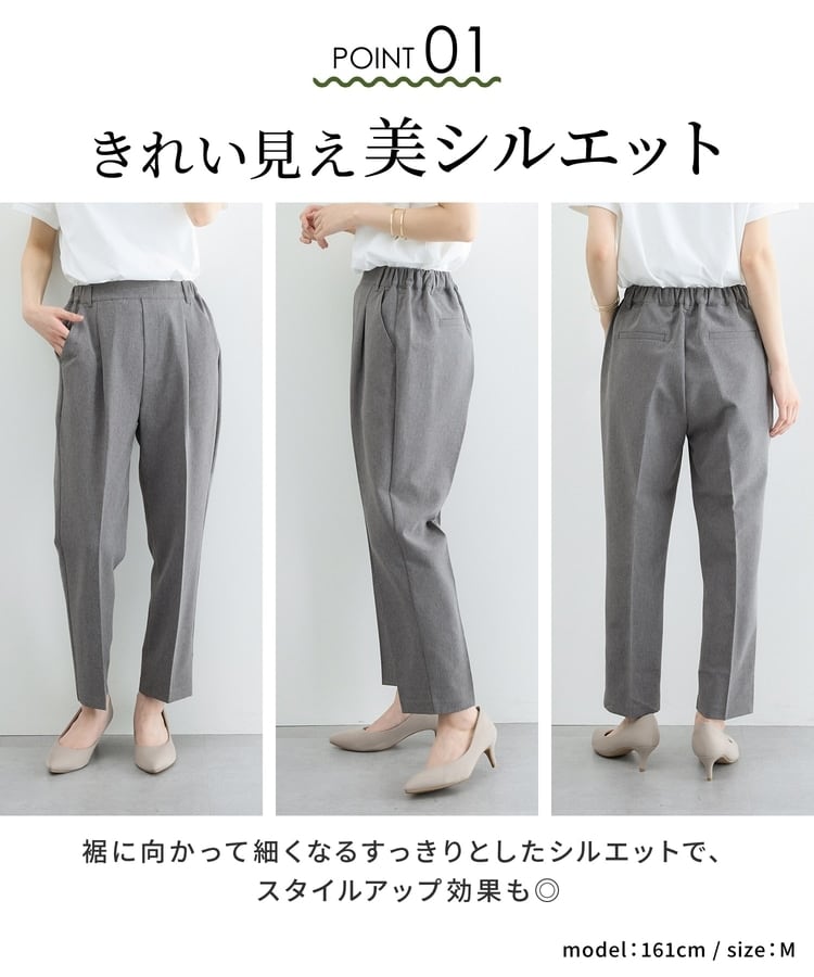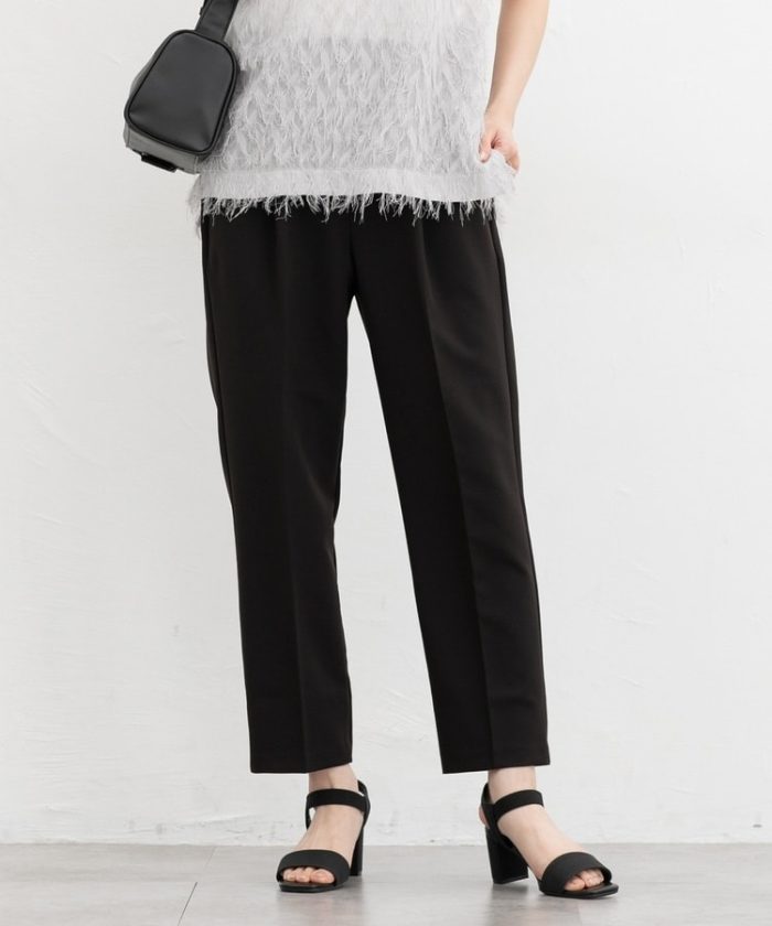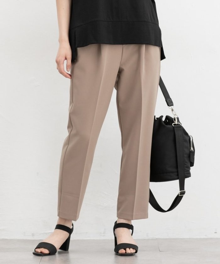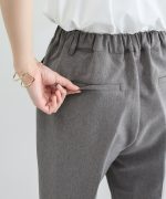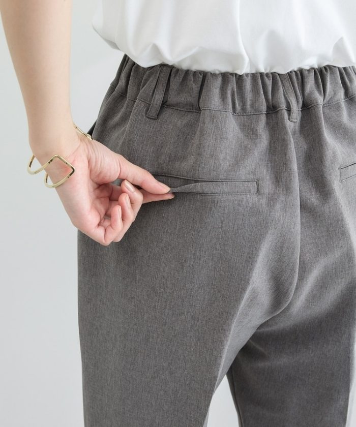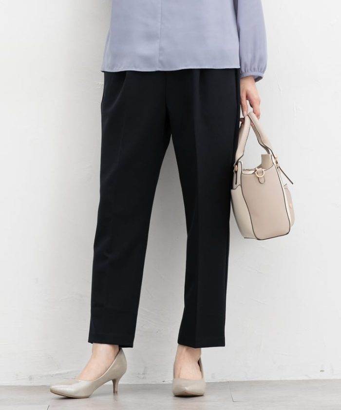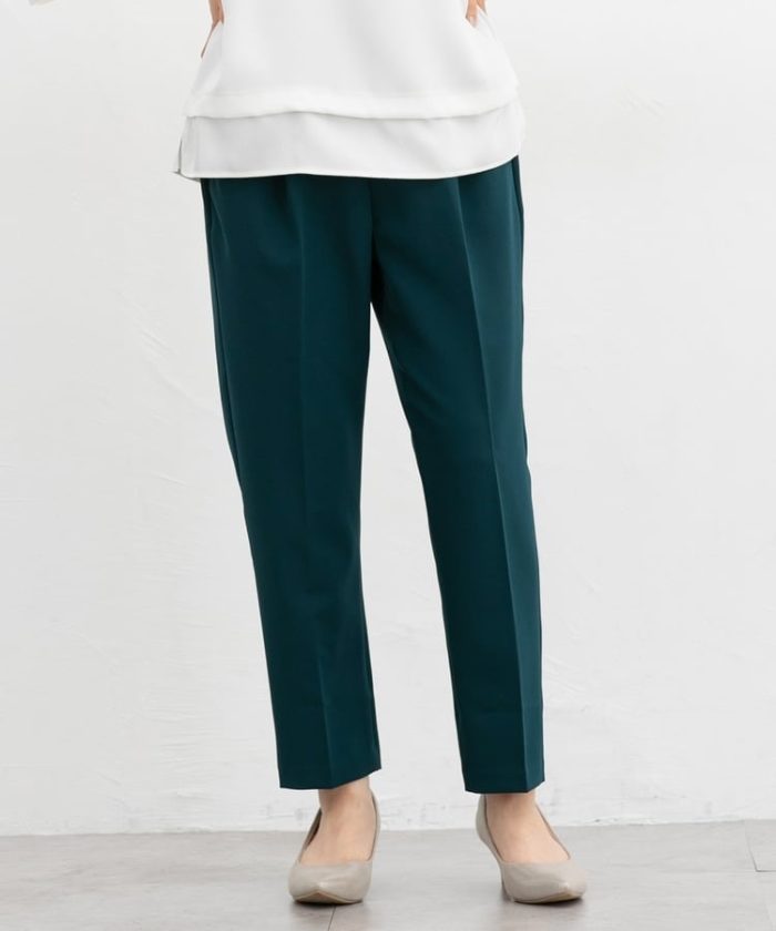 きちんと感のあるセンタープレスと、腰回りのラインにこだわった、裾に向かって細くなる美しいシルエットで美脚効果も抜群。